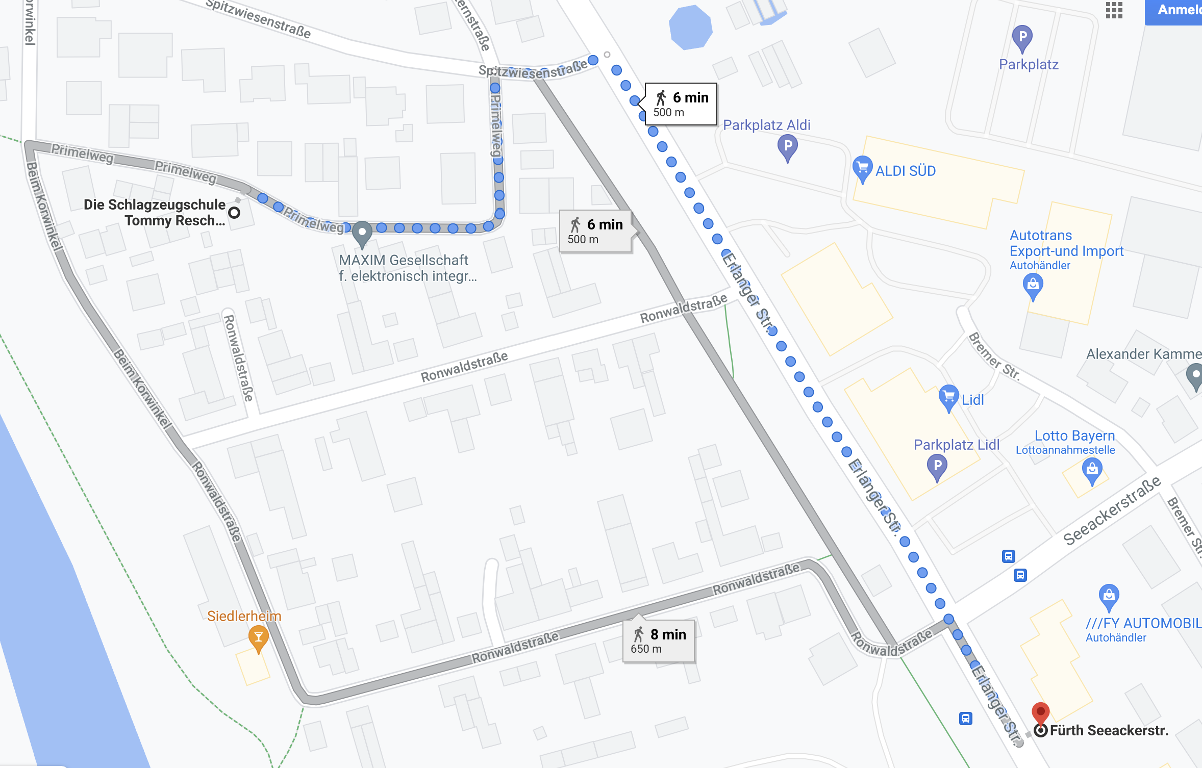 Die Schlagzeugschule liegt im Norden von Fürth,